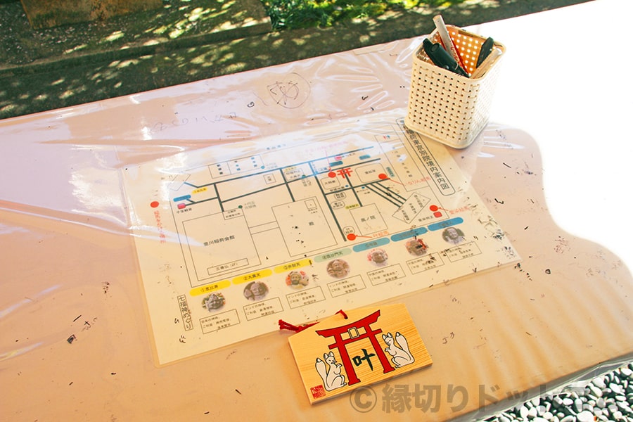 ※豊川稲荷東京別院 絵馬記入所の記入台の様子(当日はここで叶絵馬の記入となります)|画像提供:縁切ドットコム