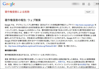 ※著作権侵害が認められた場合は、Googleに「著作権侵害による削除」の通知を行います