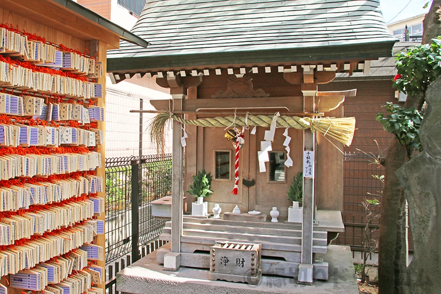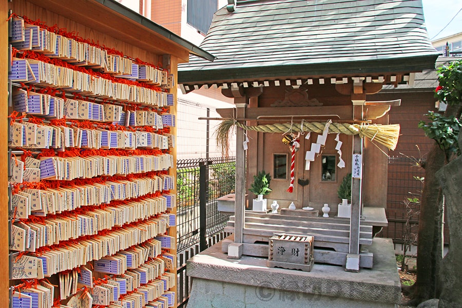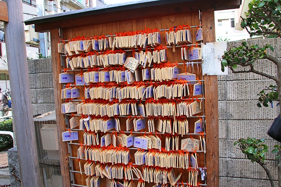 境内の一番奥には社殿があり、こちらでお参りをして縁切りを願い、その後写真にもあるすぐそばの絵馬掛けに縁切り絵馬を掛けていきます。