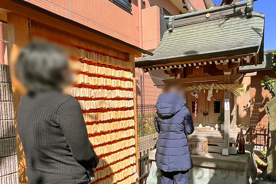 ※縁切榎 境内奥のお社にて祈願する参拝者の様子|画像提供:縁切りドットコム
