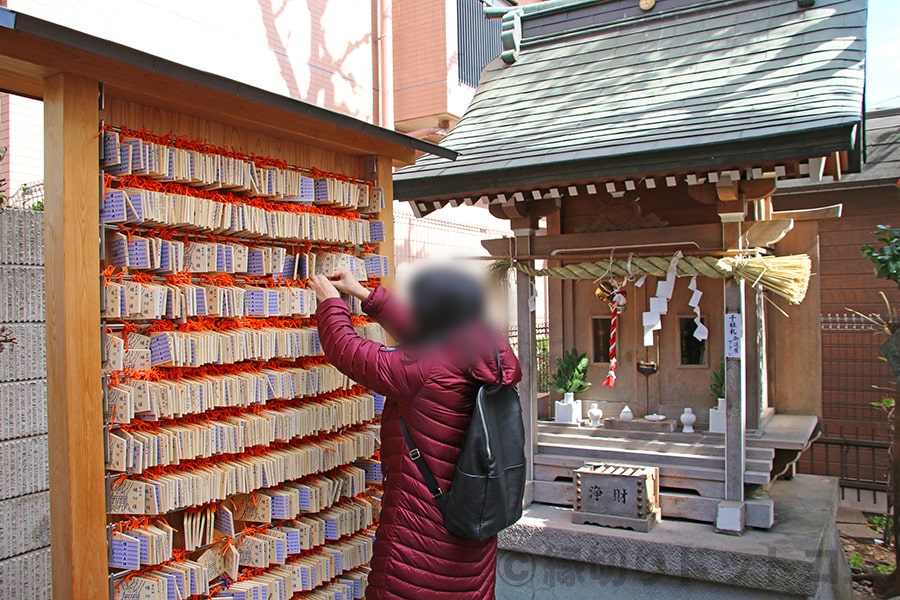 絵馬を書き終えて、情報保護のシールを貼ったら、縁切榎境内奥にある榎大六天神を祀るお社にて、お参り・縁切りの祈願を行います。