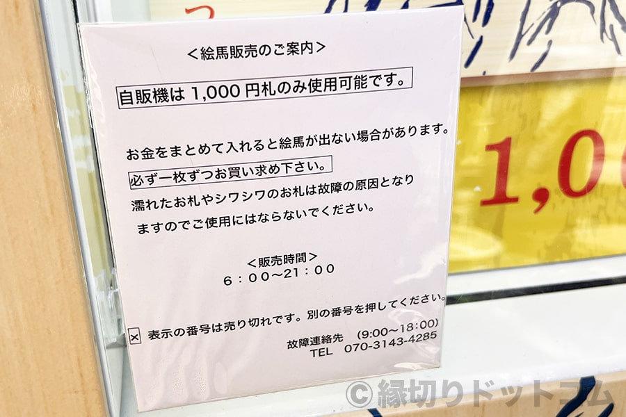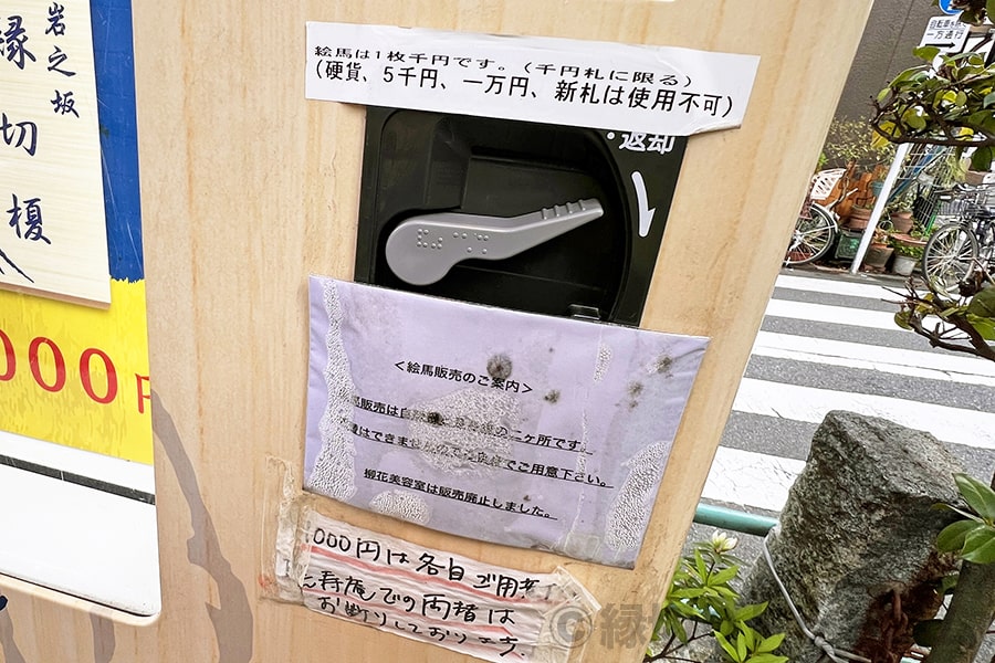 同じく縁切榎の絵馬自動販売機のその他の注意点としては