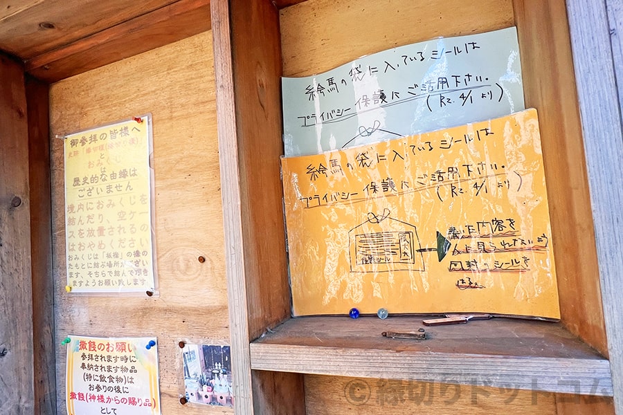 この情報保護シールがいかに「他の人に縁切りの内容を見られない」ということに貢献しており、縁切りを求めて同所を訪れる人たちの支持を受けているかもとても良く分かります。